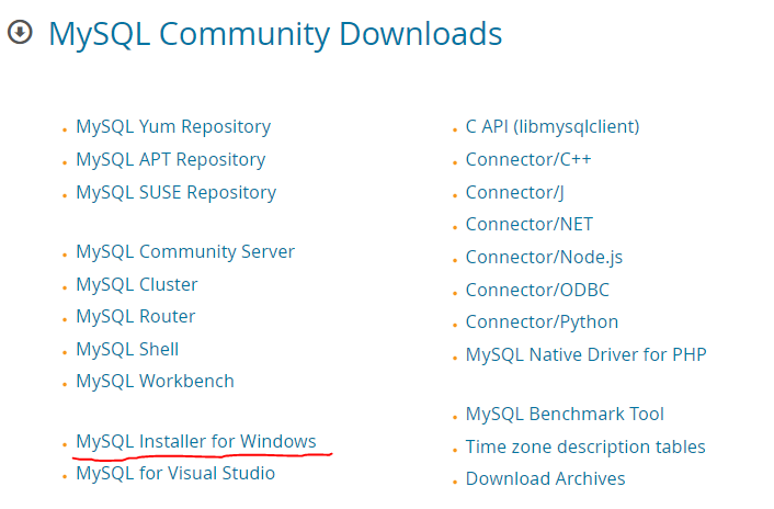 3. 목록에서 MySQL Installer for Windows를 클릭