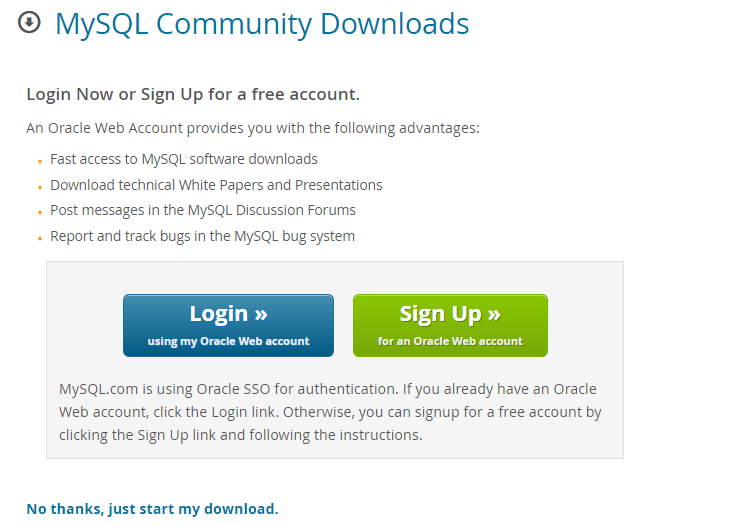 5. Download를 클릭하면 다음과 같은 화면이 나오는데 하단의 No thanks, jusst start my download를 누르면 installer를 다운로드 받을 수 있다.