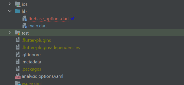 입력후에 플랫폼에 대한 메뉴가 나오는데 수정 없이 Enter를 누르면 된다. 이후 플랫폼별 앱이(Android, ios) Firebase에 등록이 되고 프로젝트 내에 lib폴더에 firebase_options.dart 파일이 생성된다.