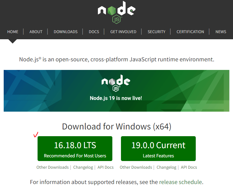 Node.js 사이트로 가서 다운로드 받는다. 최신을 설치하는 것도 좋지만 안정적인 버전을 추천한다.